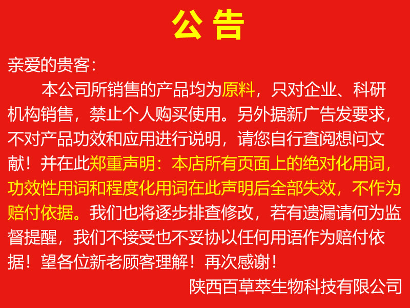 陜西百草萃生物科技有限公司,位于陜西省咸陽市秦都區(qū)濱河西路1號(hào)大秦御港城,公司成立于1996年,主要從事天然植物種植、研發(fā)、生產(chǎn)、加工、銷售為一體的高科技企業(yè)。主營(yíng)醫(yī)藥原料、保健品原料、化妝品原料,精細(xì)化工原料。公司致力于人類健康保護(hù)事業(yè)“ 以科技為動(dòng)力,以質(zhì)量求生存” 的本質(zhì),依托陜西高新科技技術(shù)人才和科研優(yōu)勢(shì),已形成多學(xué)科、全方位、高層次的技術(shù)管理精英團(tuán)隊(duì)。充分利用秦巴山區(qū)的天然藥物資源,歷經(jīng)多年發(fā)展為打造百草萃生物品牌奠定了基礎(chǔ)。